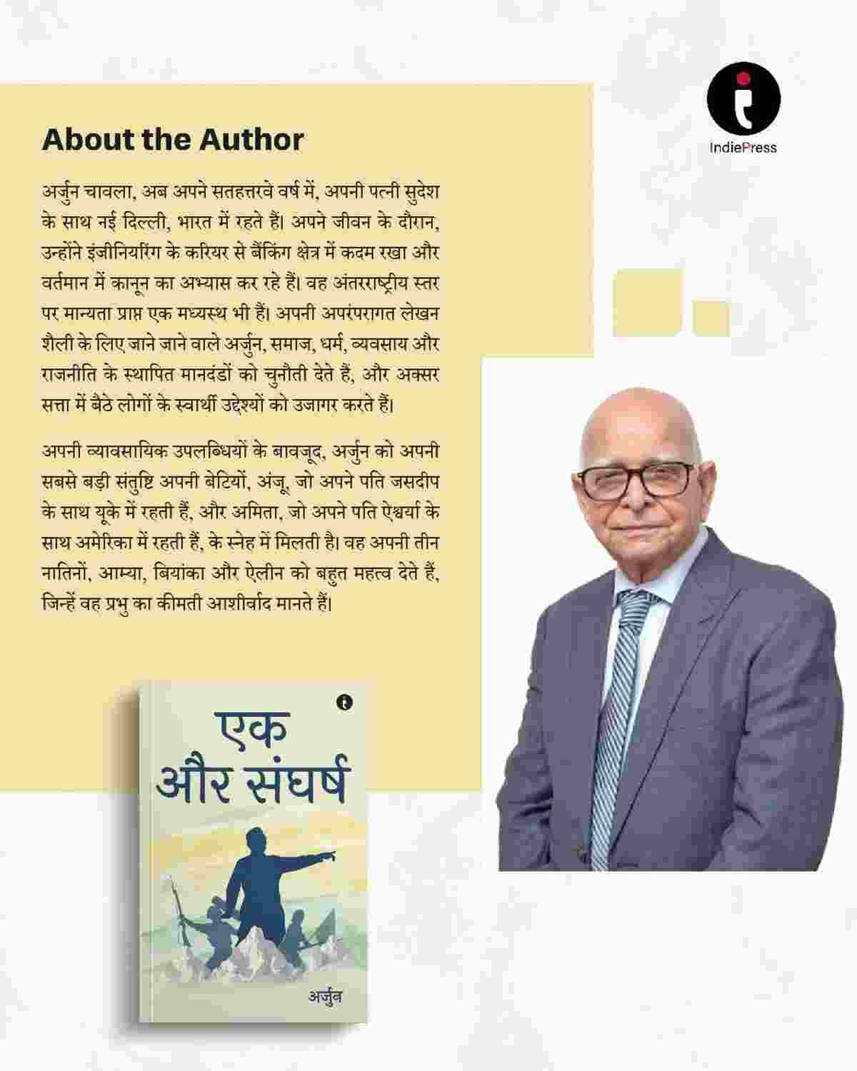 Through powerful dialogues and imaginative scenarios, author Arjun Chawla encourages readers to question the direction of contemporary politics and society. Blending satire with reflection, एक और संघर्ष offers a fresh perspective on democracy, morality, and the responsibilities of leadership.