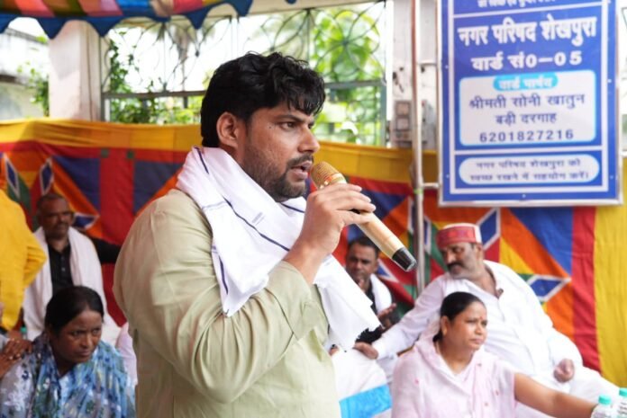 पटना: शनिवार को शेखपुरा नगर क्षेत्र के बंगालीपर मुहल्ले में 15 लाख रुपये की लागत से बने सामुदायिक भवन का उद्घाटन शेखपुरा विधायक विजय सम्राट ने किया। यह भवन विधायक मद से निर्मित कराया गया है। इस अवसर पर एक “नारी सम्मान समारोह” का भी आयोजन किया गया, जिसमें सैकड़ों महिलाओं को अंगवस्त्र भेंट कर सम्मानित किया गया। उद्घाटन कार्यक्रम के दौरान राजद के वरिष्ठ नेता वाहिद खान भी मौजूद थे।